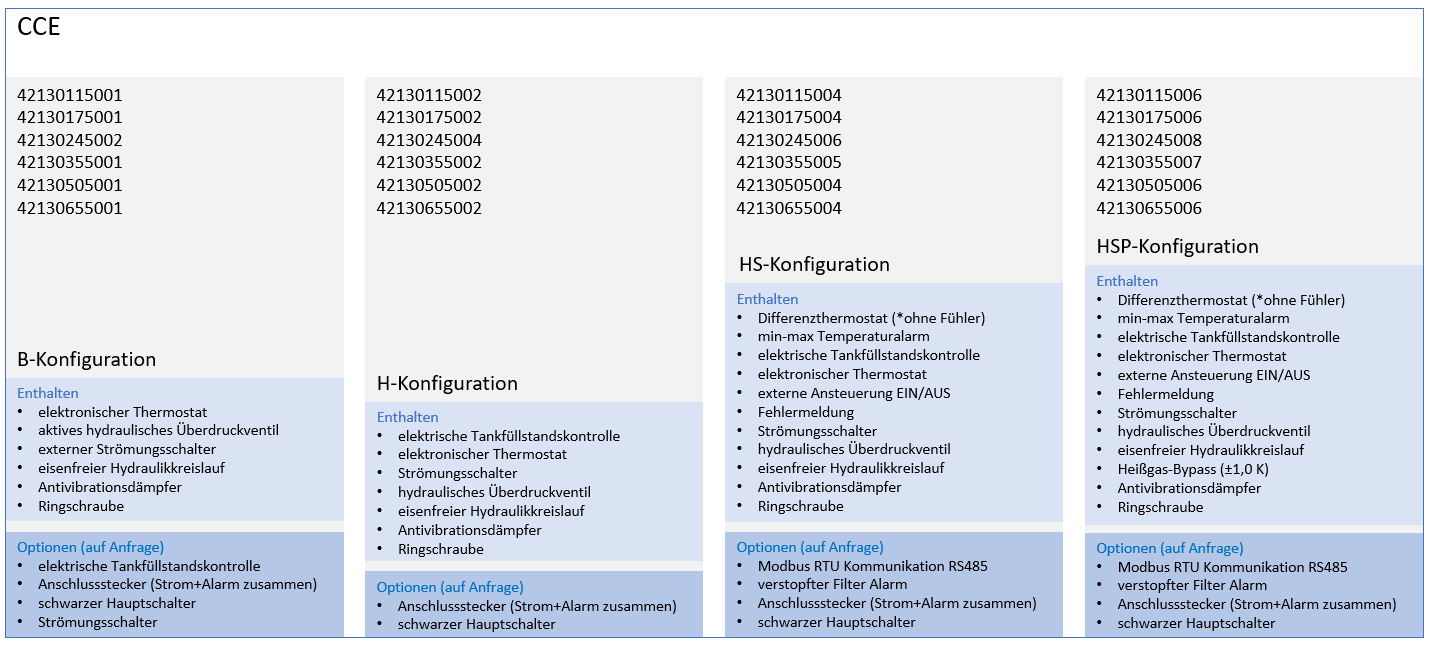Die CCE Series ist verfügbar in 4 unterschiedlichen Standardkonfigurationen.