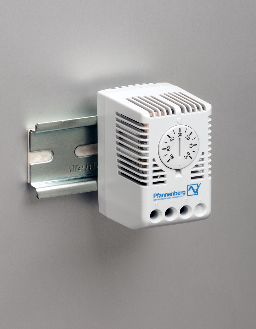 Thermostate werden als Temperaturregler eingesetzt. Sie können Filterlüfter oder Heizungen schalten, um die Temperatur in Schränken zu regulieren. Zwillingsthermostate sind Schaltgeräte in verschiedenen Temperaturbereichen, sie benötigen weniger Platz als zwei Einzelgeräte.